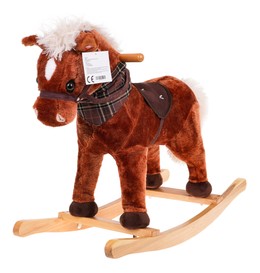 Bujany Konik Koń na Biegunach dla dzieci 24m+ Brązowy + Dźwięki + Drewniana rączka + Wygodne siedzisko + Drewniane płozy