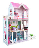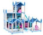 3-piętrowy domek dla lalek Prezent dla dziewczynek 6+ Niebieska willa z wyposażeniem