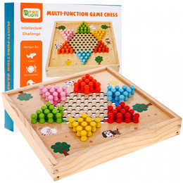 ( ilość produktów: 2 )Drewniany zestaw gier planszowych 6w1 dla dzieci Trylma Węże i drabiny Szachy Chińczyk GO