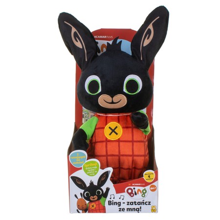Zabawka jest bardzo prosta w użyciu. Wystarczy nacisnąć łapkę Binga, żeby włączyć muzykę i rozpocząć wesołą, muzyczno-taneczną zabawę dla najmłodszych! Wszystkie maluchy pokochają tę pięknie wykonaną zabawkę, zwłaszcza jeśli lubią oglądać przygody Binga, i będą chętnie tańczyć z przyjacielem znanym z kultowego serialu!