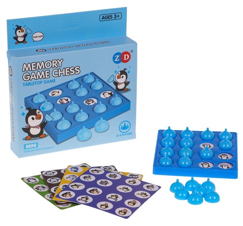 Logiczna gra rodzinna Memory, dla dzieci od 3-go roku życia i dorosłych. Zestaw składa się z dwupoziomowej planszy z otworami w postaci kółek i kart z rysunkami pingwina w różnych pozach. Wkładamy kartę z rysunkami, pomiędzy plansze i zasłaniamy otwory pachołkami. Gracze muszą zapamiętać, na którym polu ukryta jest dany pingwin. Podnosimy dany pachołek i próbujemy znaleźć identyczny rysunek. Wygrywa zawodnik, który odszuka najwięcej par. Gra uczy cierpliwości, ćwiczy pamięć i koncentrację. Funkcje gry: - przeznaczona dla dzieci od 3-go roku życia jak i dorosłych, - znakomicie wykonana, - doskonały trening umiejętności i cierpliwości, - ćwiczy pamięć i koncentrację, - pomaga się zrelaksować, - świetny sposób na wspólne spędzenie czasu, - idealny sposób na nudę lub oderwanie dzieci od komputerów, telefonów, tabletów. |